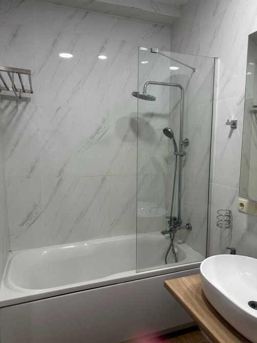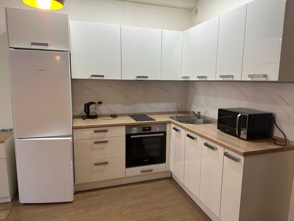 Свіжий ремонт, сучасні меблі, місткі шафи для зберігання речей. Зручний диван, є робоче місце для віддаленої роботи з дому. Вся необхідна побутова техніка: холодильник, телевізор, мікрохвильова піч, електрочайник, духова шафа, варочна поверхня, потужна витяжка, бойлер, пральна машина, фільтр для питної води. Санвузол має повноцінну ванну, є підвісна стаціонарна сушка для білизни поруч з рушникосушаркою.