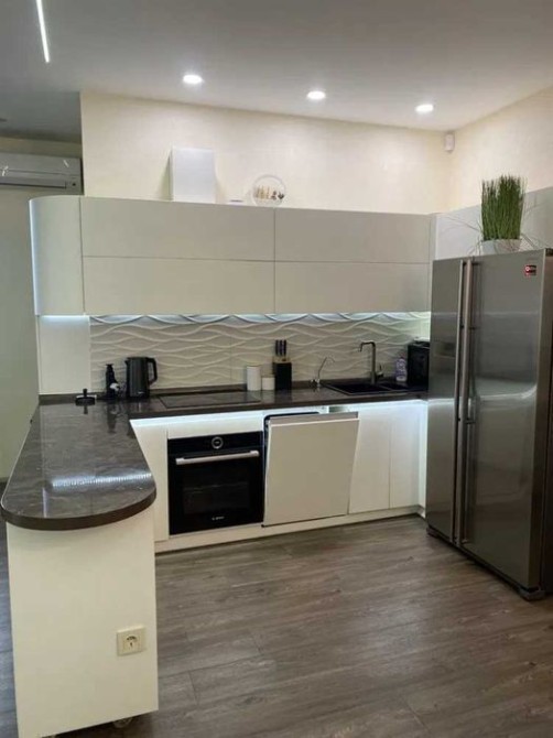 + Закрытый двор с детской площадкой и круглосуточной охраной. Кухня и техника: + Современная кухня с полным комплектом бытовой техники: холодильник, плита, духовка, микроволновка, чайник, посудомоечная машина.