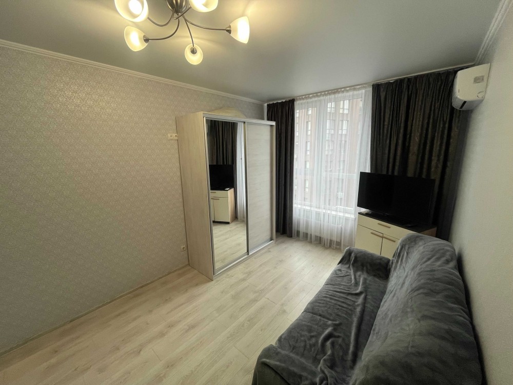 Оренда стильної 1 к кв з кухнею студією в новому будинку ЖК "Файна Таун" в Шевченківському районі, вул. Салютна, 2 Квартира 43 м2 , розташована на четвертому поверсі та складається з передпокою, спальні, великої кухні -студії та санвузла. Вікна квартири виходять в двір. Облаштована всіма необхідними меблями з екологічно чистої деревини та оснащена побутовою технікою: телевізор Samsung Smart 43, кондиціонери в кухні та кімнаті, плита індукційна, вбудований холодильник, духова шафа з функцією мікрохвильової печі, пральна машина з сушаркою. В кухні та ванній кімнаті тепла підлога, високошвидкісний інтернет. ЖК "Файна Таун" це: закрита територія з входом по картці, цілодобова охорона, відеоспостереження, паркінг, підземні контейнери для сміття, зарядні станції для електромобілів та лавки з інтегрованими батареями для підзарядки девайсів, розумне освітлення, яке підлаштовується під час доби та ще багато чого для того, щоб жити з комфортом й ні в чому себе не обмежувати) розповім при перегляді. Зручне транспортне сполучення та розвинута інфраструктура: магазини,спортивні та пішохідні зони ,зона барбекю, ресторани та кафе. Квартира, в якій поєднані комфорт та затишок, шукає своїх порядних орендарів молоду пару або одну людину без дітей та тварин. Перша оренда, квартира вільна.