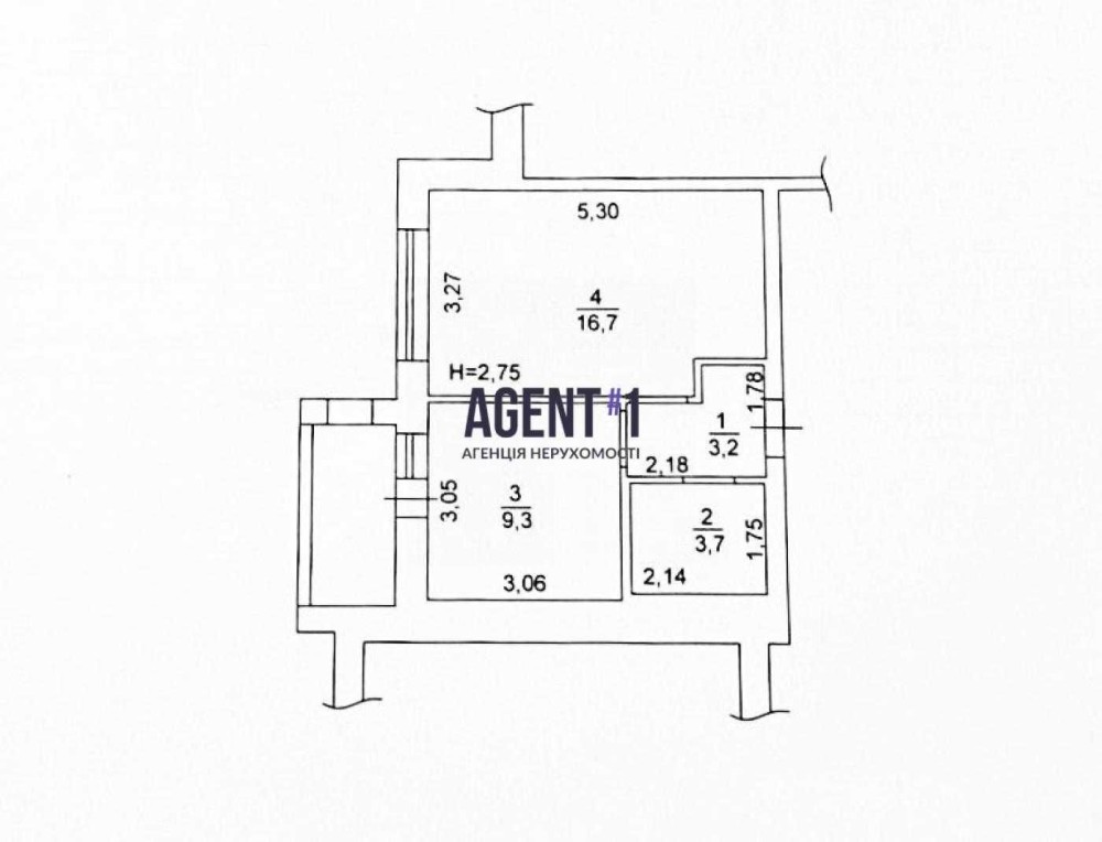Площа квартири 36 м2, спланована в кухню-студію + окрема кімната. Поверх 9/9.