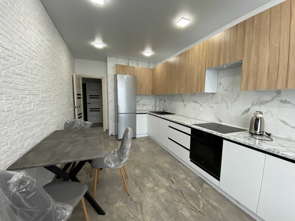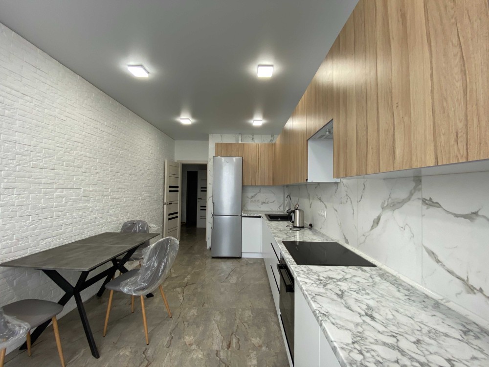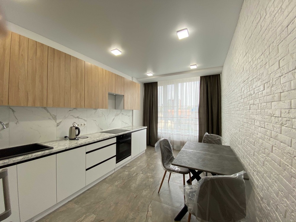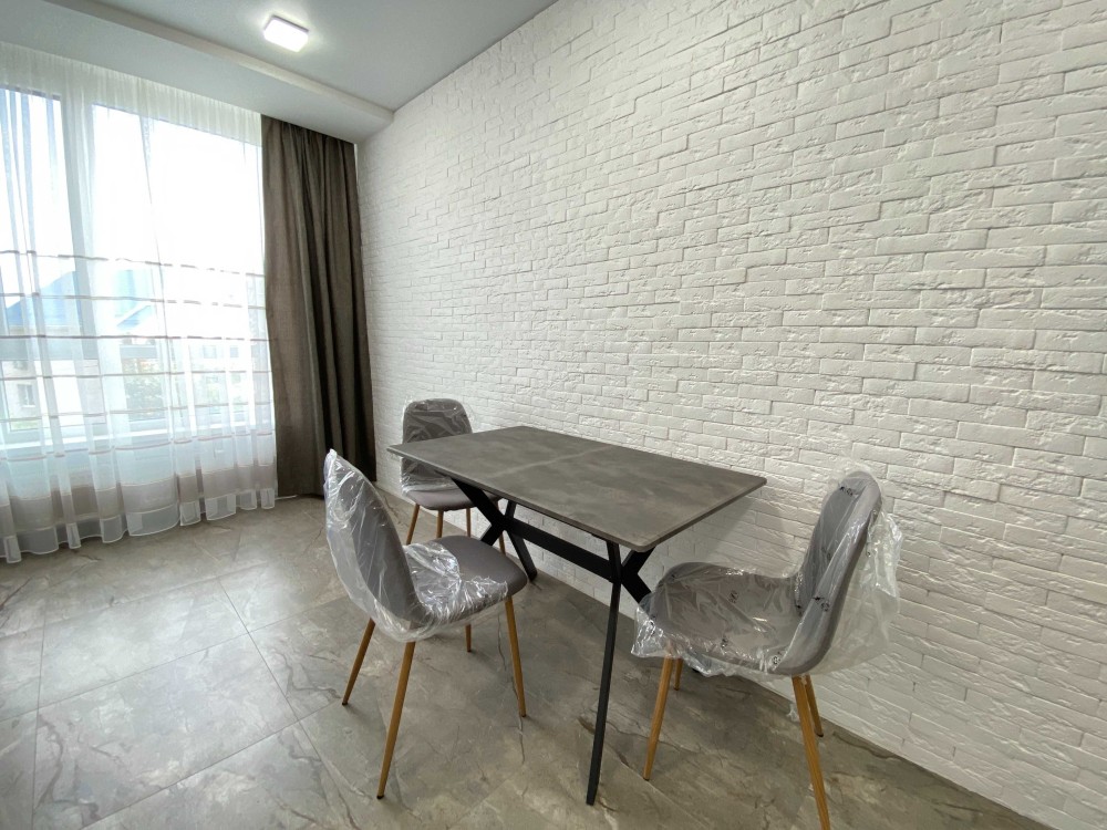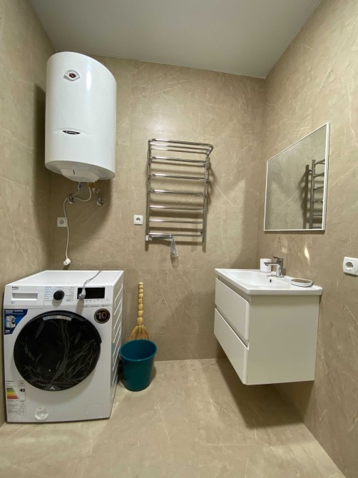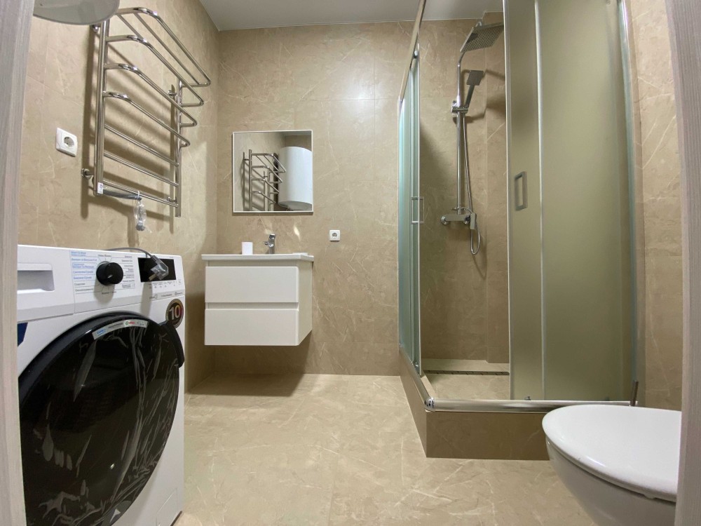 Все новеньке. Є тепла підлога, гардероба кімната. Квартира повністю укомплектована необхідною технікою: кондиціонер, духова шафа, посудомийка, пралка з сушкою, холодильник з морозильною камерою, телевізор.