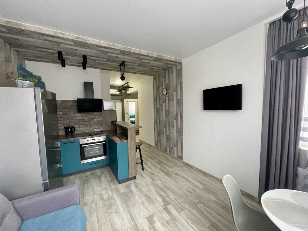 Спальная комната отдельная со своей гардеробной. Кухня- гостиная с зоной отдыха , столовой зоной и рабочей. Всё удобно и функционально. В прихожей встроенный шкаф, очень вместительный. Для комфортного проживания есть всё необходимое. Два телевизора, стиральная машинка с функцией сушки, холодильник, микроволновка, кондиционер и т.д.