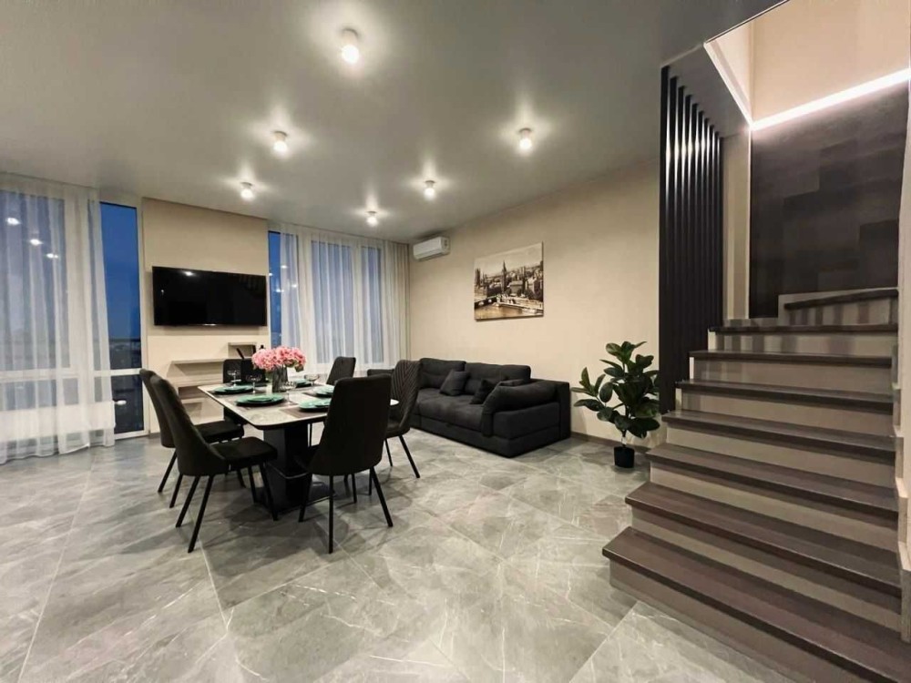 Головною особливістю цієї квартири є велика тераса на якій можливо влаштовувати барбекю зону для комфортного відпочинку та т.д.