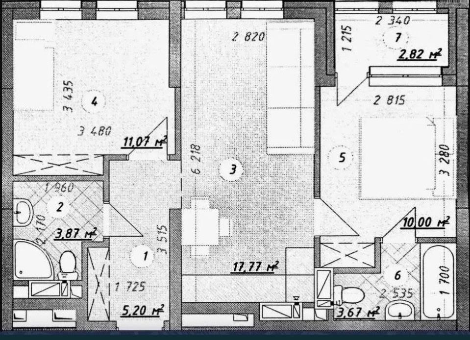 • Трехкомнатная