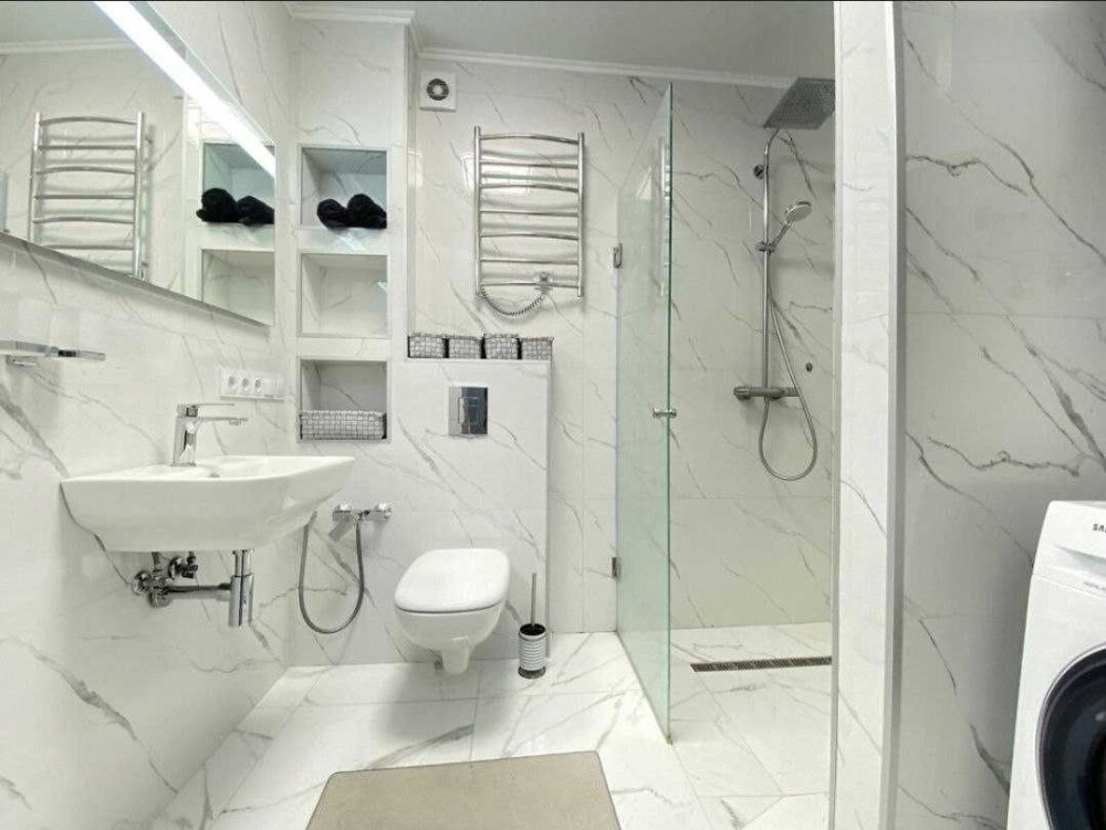- Бытовая техника: посудомоечная машина, варочная панель, духовой шкаф, холодильник, стиральная машина, бойлер