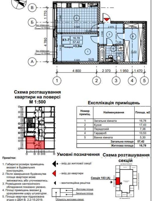 • Общая площадь 57 м2