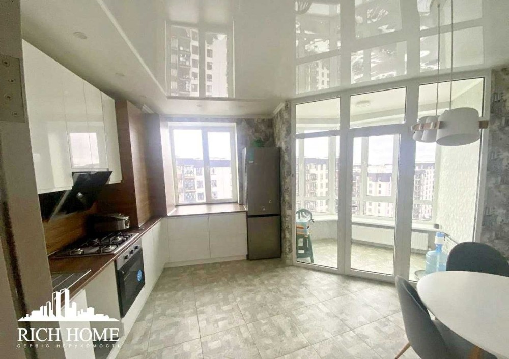 Простора кухня з виходом на балкон, засклений