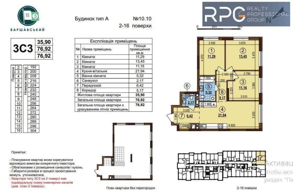• Общая площадь 76.92 м2