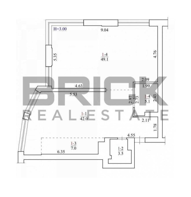 Висота стель - 3 м.