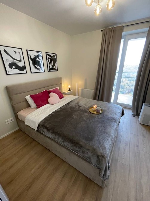 Все дороге: італьянський керамограніт . Німецька сантехніка . Іспанська інсталяція . Дорогий ламінат Ексклюзивна дизайнерська раковина в санвузлі . Тепла підлога! Функціональне планування: кухня-вітальня, гостьова зона з відкритою терасою, вбудована кухня з усією побутовою технікою: склокераміка поверхня, духова шафа, витяжка, вбудований холодильник і вбудована посудомийка, Гранітна мойка і Гранітний змішувач. З спальні вихід на відкриту терасу з Панорамним видом на лісовий заповідник. Диван розкладається , як двуспальне ліжко, стіл на 4 персони. Напроти столу телевізор SMART TV , кондиціонери. Окрема спальня з великоювмісткою шафою, двуспальне ліжко з ортопедичним матрасомВ коридорі велика шафа і дзеркало в повний ріст. Квартира готова до проживання , від Вас тільки кімнатні капці. До метро Голосіївська або Деміївська 5 хв.на авто Автобус який курсує від ЖК до метро Голосіївська. .В коридорі велика шафа.Деталі по телефону.Ключі на руках, перегляди по домовленості.Комісія 50 %