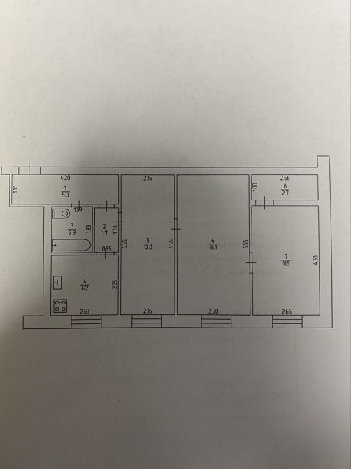 • Площадь кухни 6.2 м2