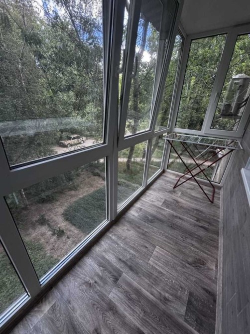 Розширений балкон із панорамними вікнами.
