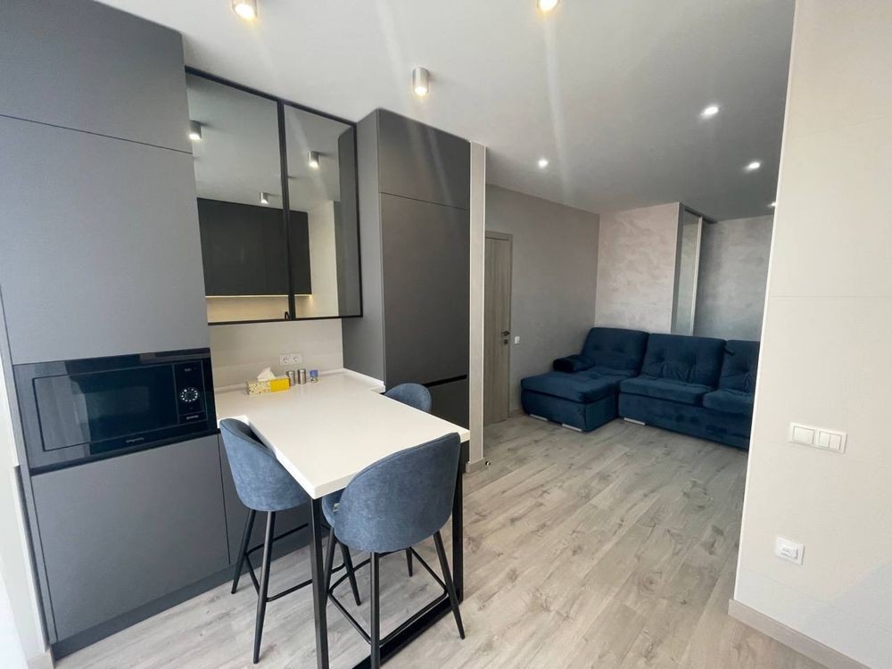 АВТОРСЬКИЙ євроремонт, ФАКТИЧНО кухня -СТУДІЯ + дві окремі кімнати + балкон із ШИКАРНИМ КРАЄВИДОМ на місто + велика ГАРДЕРОБНА, ІНДИВІДУАЛЬНЕ електро опалення + підігрів підлог +, усі нові меблі під замовлення, вся побутова техніка, ліфт працює, будинок заселений!