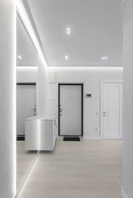 - Стіни оформлені декоративною штукатуркою, стелі - з гіпсокартону з точковим освітленням і тубусами;