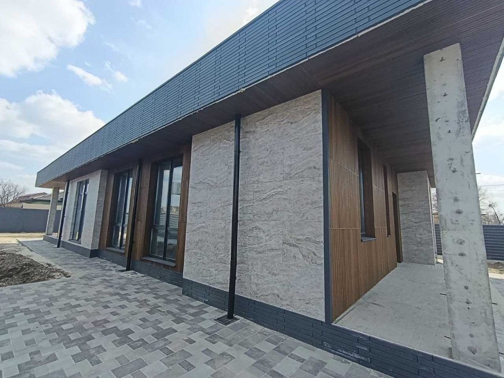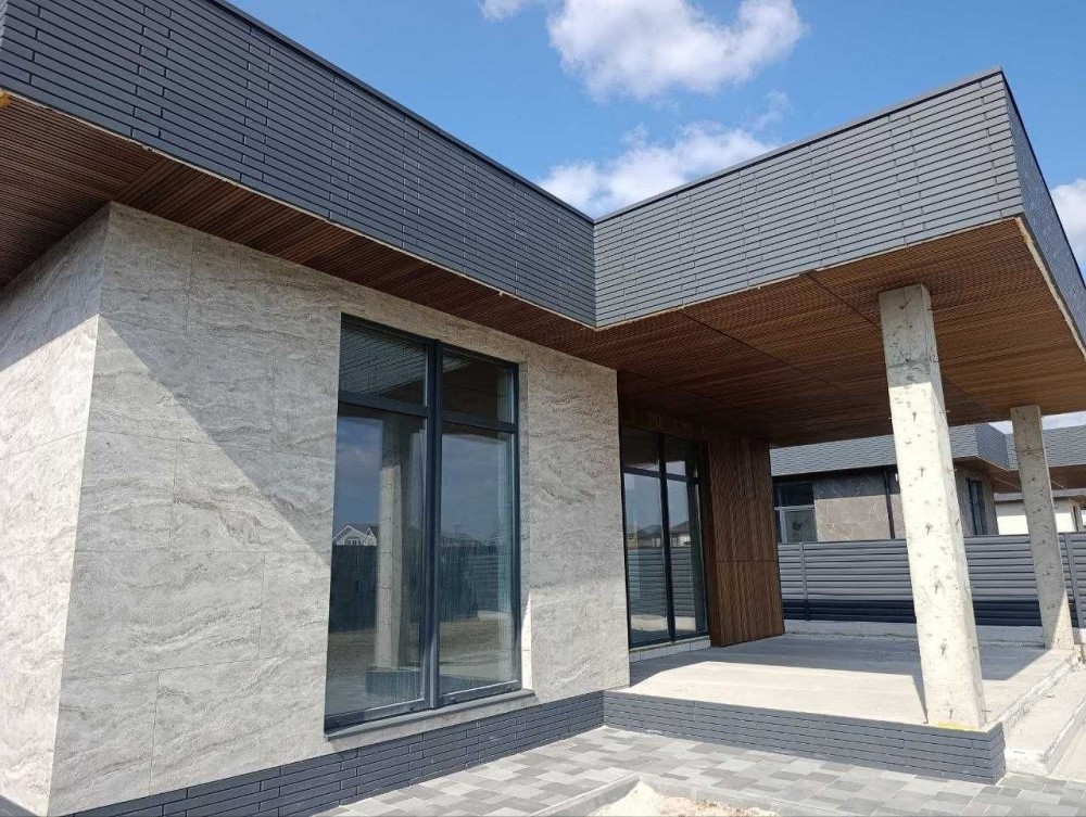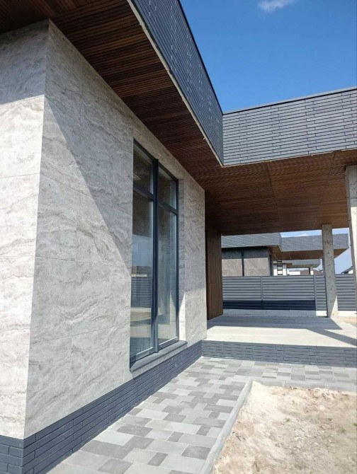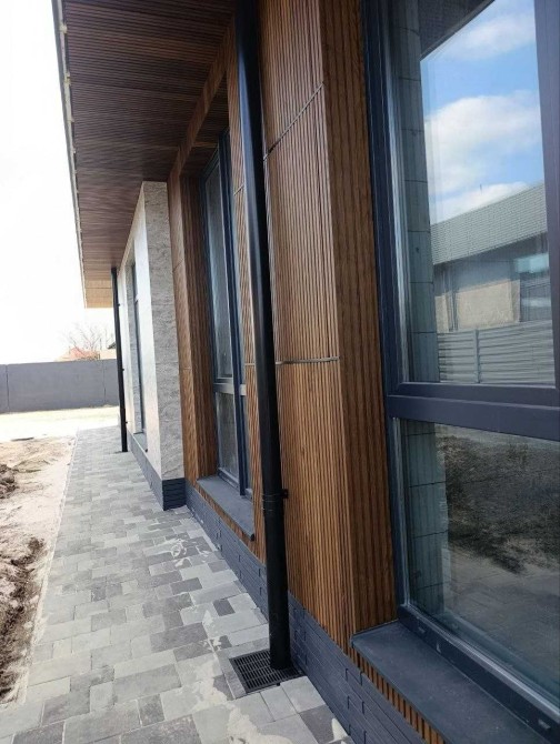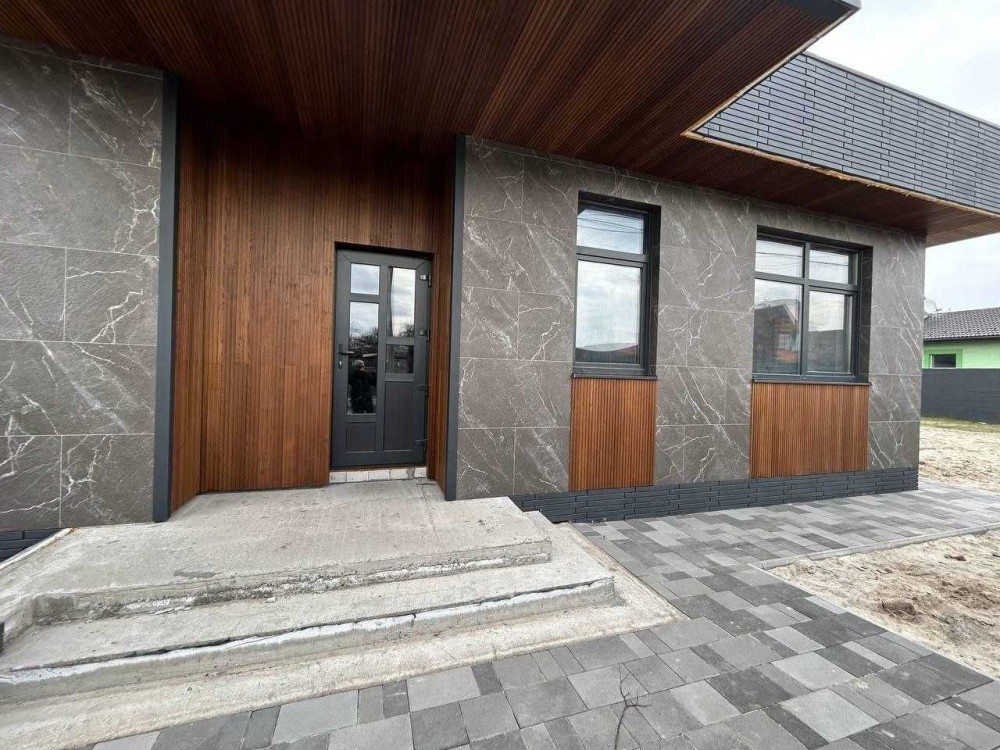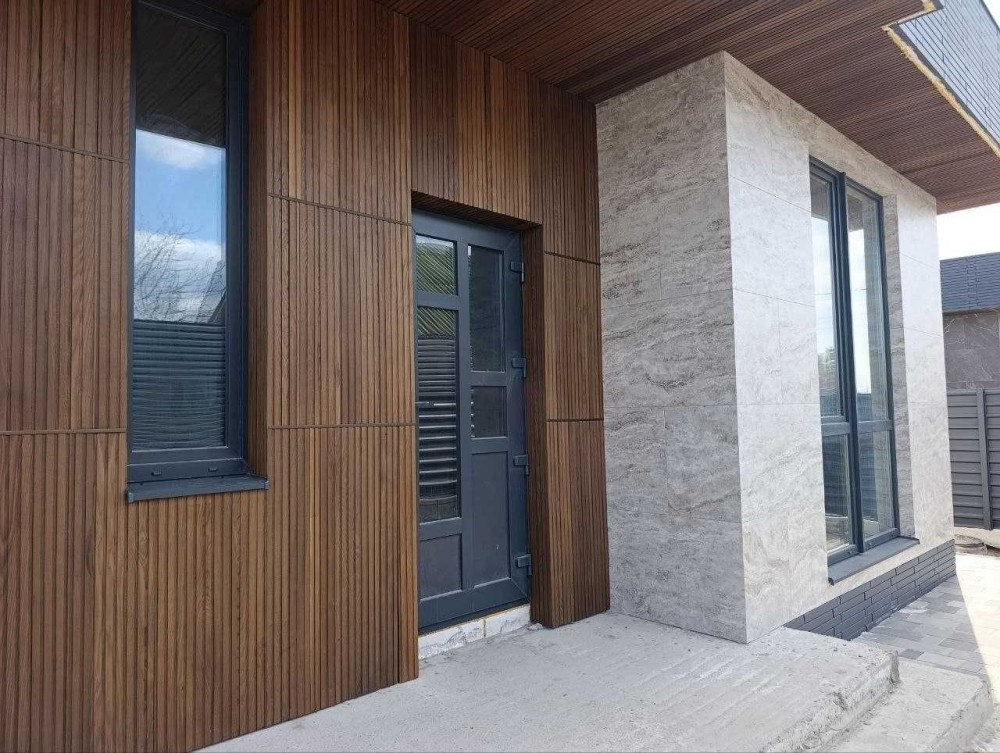 На фасаді декоративні планки, керамограніт імітований під камінь !!!