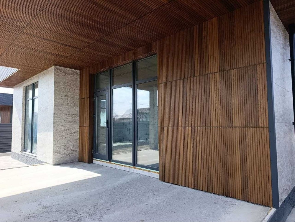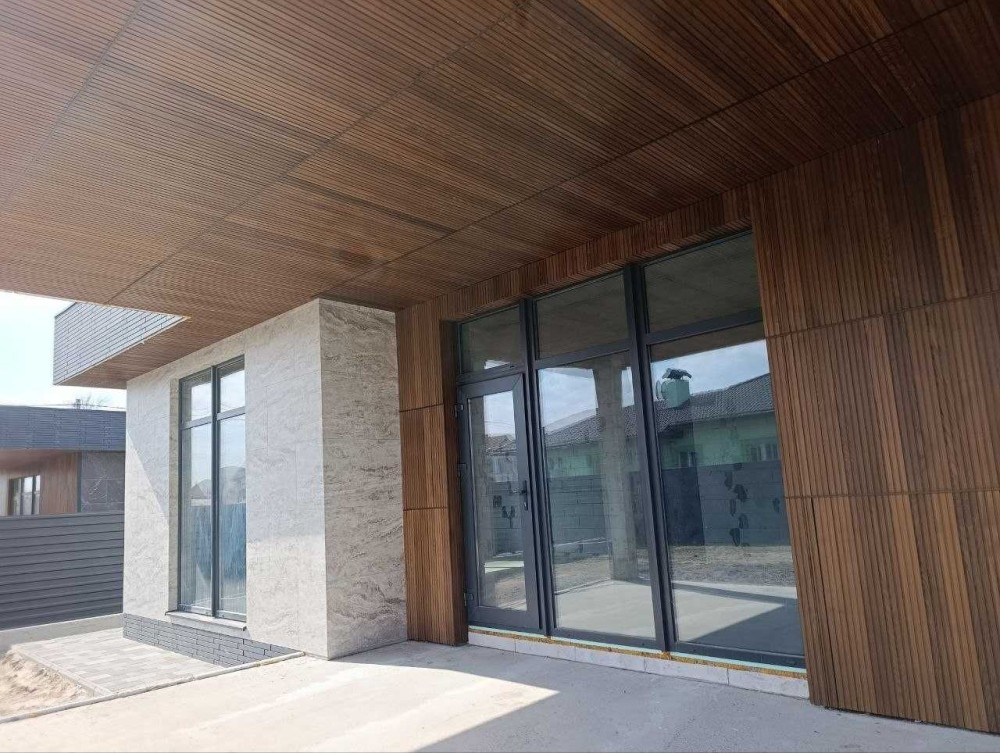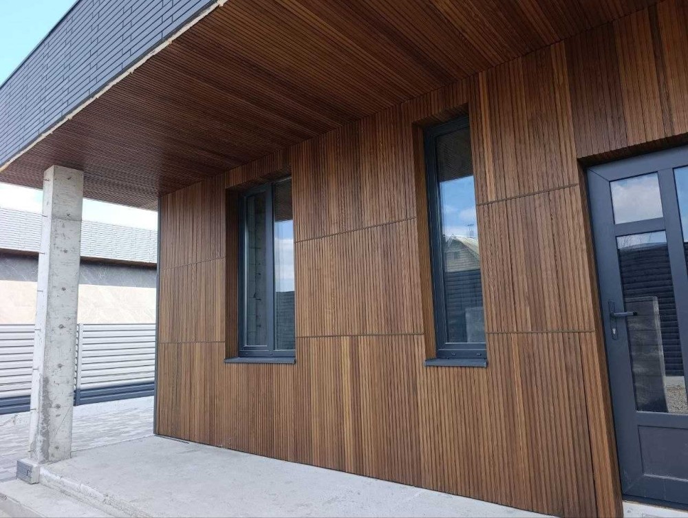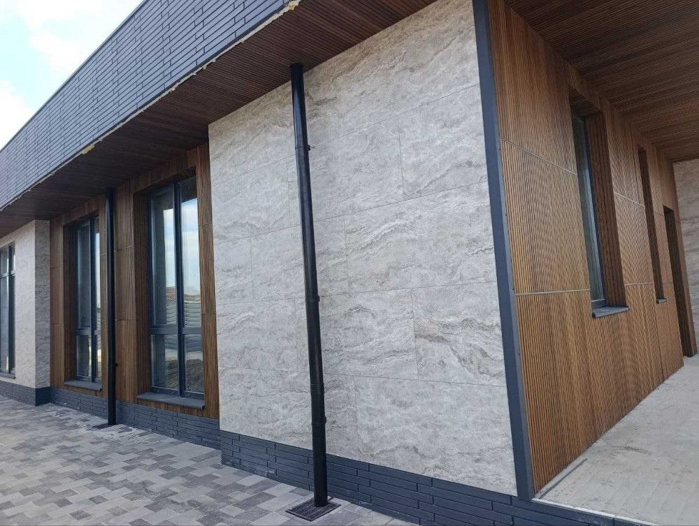 На фасаді декоративні планки, керамограніт імітований під камінь !!!
