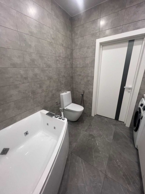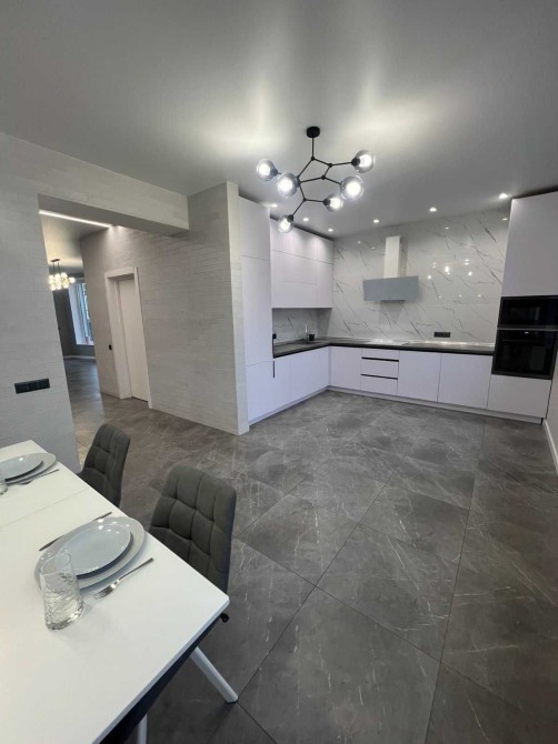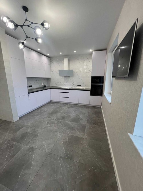 Другий рівень, коридор 5м2 облицьований плиткою, хол 13м2, вітальня 21м2, кухня 23м2, кухонні меблі з вбудованою технікою, фасади двосторонні акрилові, санвузол з душовою 7м2.
