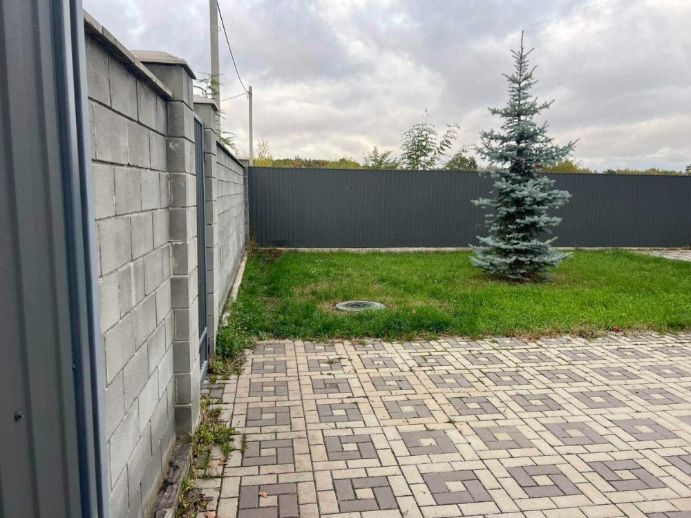 На ділянці, дорогий добротний навіс на дві машини(7000 $), автоматичний полив, свердловина 52 метри, септик з переливом 2х3 кільця по 3,5 метра (не наповнюється ніколи), багато ФЕМки, яка укладена на бетонну армовану заливку, а не грунт, паркан по периметру з автоматичними воротами, розетки для зарядки електромашин, до будинку підключено електрику з дуже великим запасом 35кВт 380 вольт, насправді вистачало б і 15кВт.