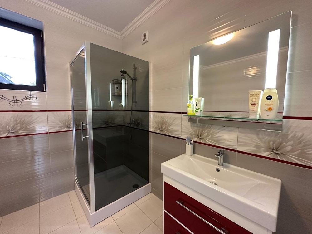 Продається новий індивідуальний житловий будинок котеджного типу загальною площею 131 м.кв. під чистове оздоблення, розташований в селі Крячки Фастівського (колишнього Васильківського) району Київської області на території нового житлового масиву із сучасною котеджною забудовою, що перебуває на відстані 20 км від станції метро «Теремки» міста Києва та за 1,5 км від міста Васильків. Житловий будинок складається з першого та мансардного поверхів. Загальна площа будинку із допоміжними спорудами становить 173,1 м.кв., з яких: а) площа будинку ‒ 131,0 м.кв., у тому числі житлова (основна) ‒ 94,1 м.кв. та допоміжна (підсобна) ‒ 39,6 м.кв.; б) площа тераси – 23,1 м.кв.; в) площа трьох балконів – 13,4 м.кв. (5,8 + 4,9 +2,7 м.кв.); площа ґанку – 5,6 м.кв. Котедж вміщує в собі 5 (п’ять) доволі просторих кімнат, 2 (два) санвузли (на кожному із поверхів), 1 (одне) технічне приміщення (котельня або бойлерна), 2 (два) коридори, 1 (одну) вітальню із виділеною еркером обідньою зоною, що поєднана з кухнею. Із вітальні є окремий вихід на велику терасу, з якої відкривається затишний вигляд на внутрішній двір. Кожна з трьох мансардних кімнат має окремий вихід на балкон. Над усією площею мансардного поверху розташоване містке горищне приміщення. Будинок приєднаний до електропостачання потужністю ‒ 12кВт (3 окремих фази). Має свердловину глибиною 55 метрів із фактичним дебітом (спроможною потужністю) ‒ 2,5 м.куб./год. та каналізацію септик з переливом на 11 м.куб. На усій площі першого (крім житлової кімнати) та у санвузлі мансардного поверхів встановлена система водяної теплої підлоги фірми «Rehau». По котеджу розведені: опалення, водопостачання і каналізація. В будинку передбачена можливість встановлення камінної топки, а також приєднання котеджу до газорозподільної мережі та всесвітньої мережі Інтернет. Індивідуальний житловий будинок розташований на земельній ділянці площею 0,075га з цільовим призначенням – (02.01) для будівництва і обслуговування житлового будинку, господарських будівель і споруд (присадибна ділянка). Під житловою забудовою перебуває 0,0115га земельної ділянки, решта 0,0635га займає просторий двір. Кадастровий номер земельної ділянки: 3221487004:03:006:0328. Земельна ділянка огороджена парканом із монолітного фундаменту, що опорядковане металевим штахетом із обох боків та металевим профілем з тильної та фасадної сторін. Заїзд у двір має відкатні ворота. На території двору (перед будинком) облаштоване загальне паркомісце на 2 (два) автомобіля, решта двору засіяне газонною травою. Котедж побудований з якісних матеріалів за проектом європейського архітектурного бюро. Так, фундамент, перекриття та міжповерхові сходи ‒ монолітні. Стіни будинку збудовані з газоблоку AEROC D500 (товщиною 300мм), що утеплений пінопластом 100мм. Внутрішні міжкімнатні перегородки виконані із цегли. Дах ‒ металочерепиця фірми «Ruukki», що утеплений мінераловатними плитами загальною товщиною 200мм. Вікна вироблені з профілю фірми «Rehau» серії EVRO 70. Фасад котеджу покритий акриловою штукатуркою. Будинок за усім периметром має вимощення шириною 0,9 метри, що облаштоване фігурними елементами мощення (ФЕМ). Зручне ергономічне планування будинку, а також наявність високих стель обох поверхів дає можливість відчувати себе вільно і затишно. Завдяки правильному утепленню зовнішніх стін будинку, у ньому прохолодно влітку та тепло вз