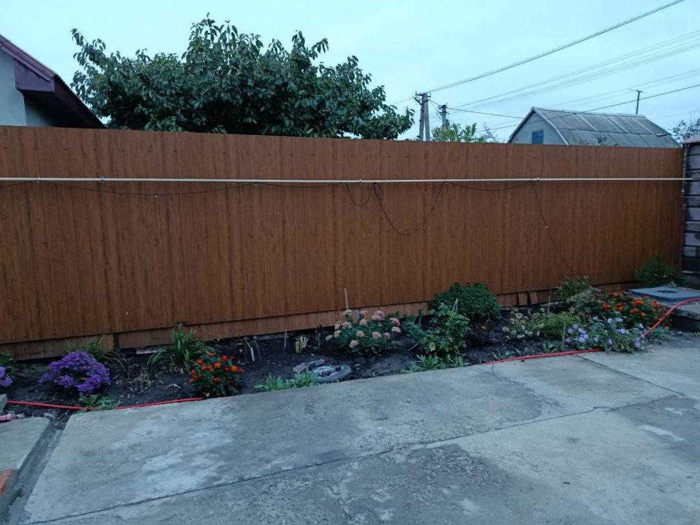 На участке 6 соток с молодым садом и красивыми газонами имеется еще хозпостройка. Две выгребные ямы из красного кирпича. Ворота раздвижные.