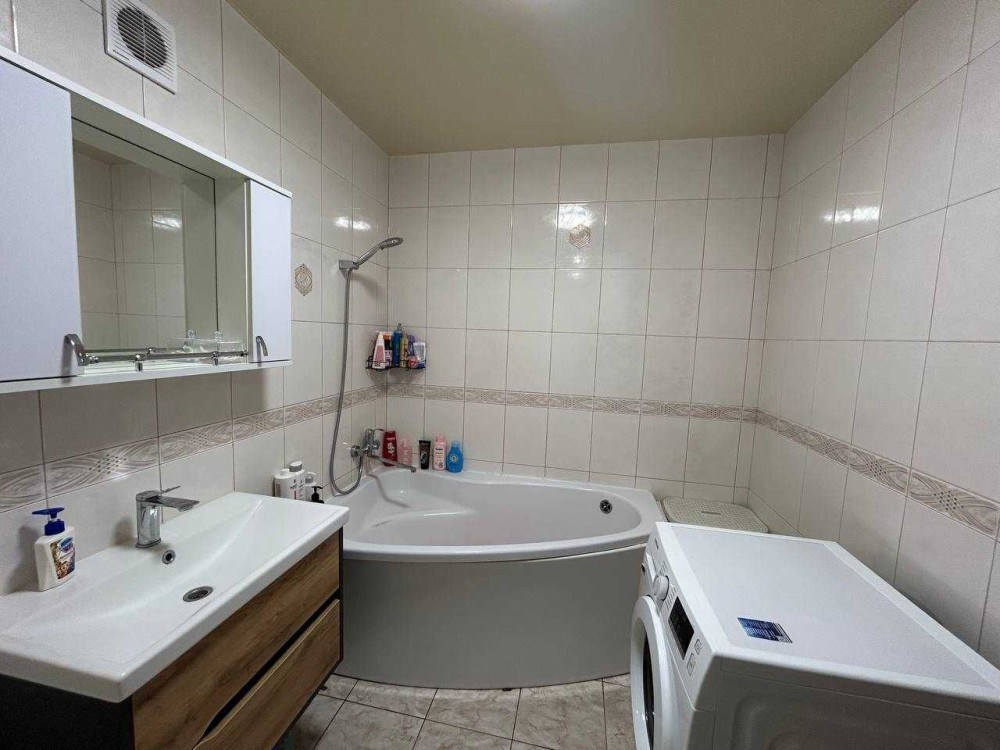 Теплые полы в кухне и комнате на первом этаже. Окна МПО. Полы ламинат. Просторная ванная.