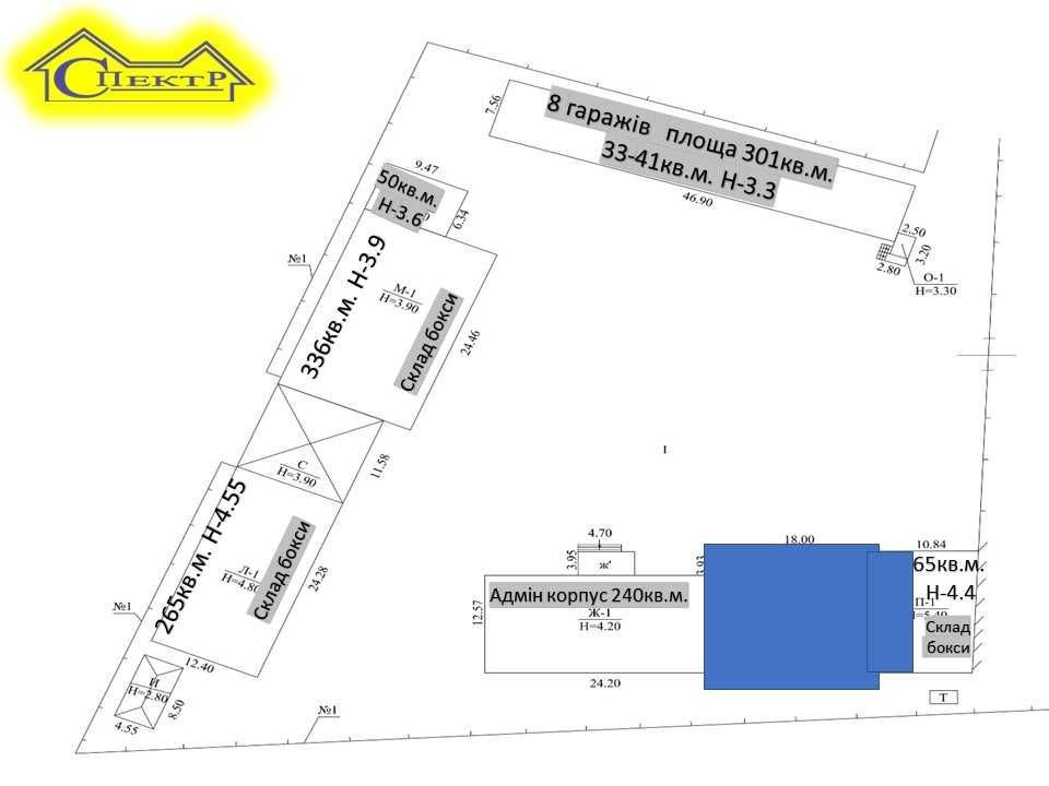 Комплекс має складські приміщення(Бокси), офісні, гаражі .