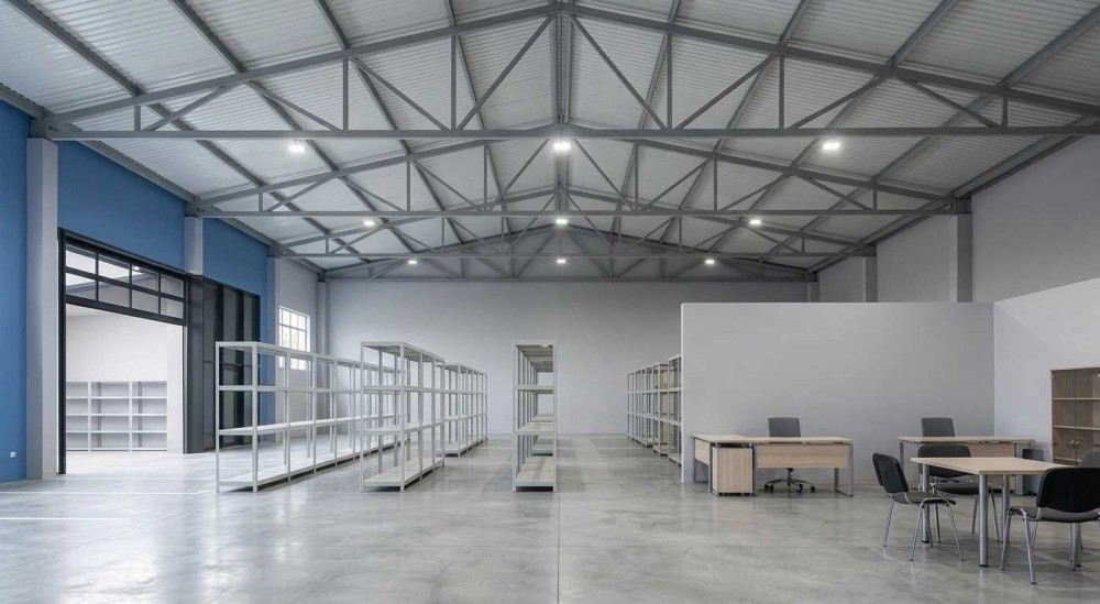 Складська частина: ~2150 м², робоча висота стелі до 12 метрів, що дозволяє встановити 5-6 ярусне стелажне зберігання. Підлога з антипиловим покриттям, розрахована на високі навантаження.
