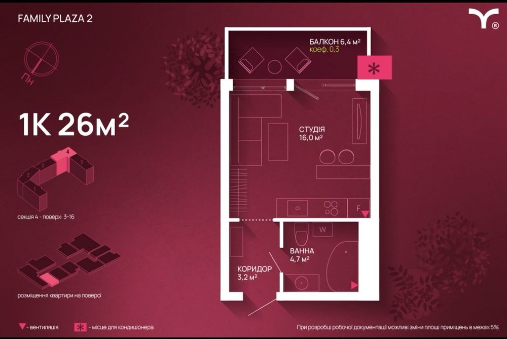 • Общая площадь 26 м2