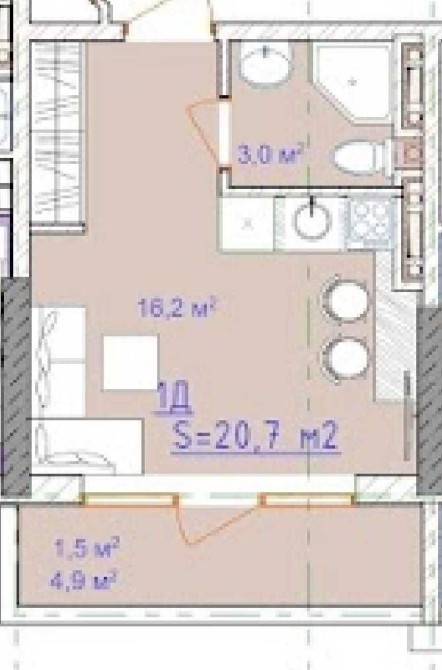 • Общая площадь 20.7 м2