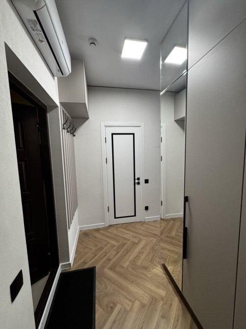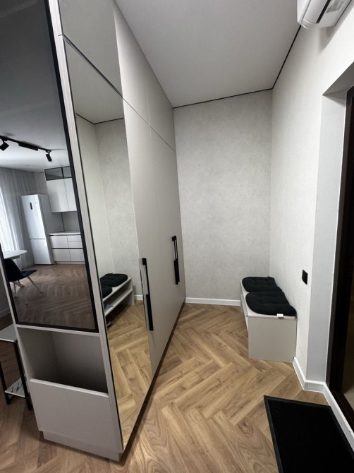 При входе в квартиру вас встречает красивый гостевой диванчик , большой вместительный шкаф для верхней одежды .Все продумано до мелочей .Сан узел совмещен в красивой облицовке с душ кабиной.