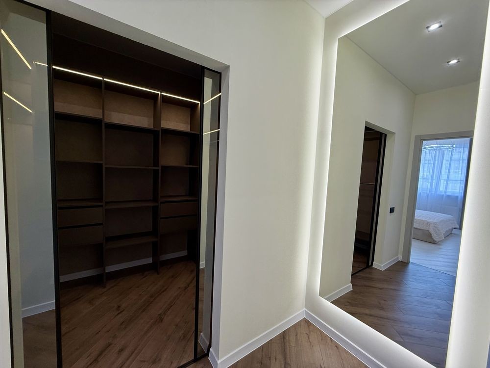 - 19 этаж , просторная кухня студия и две спальни с балконом и гардеробом