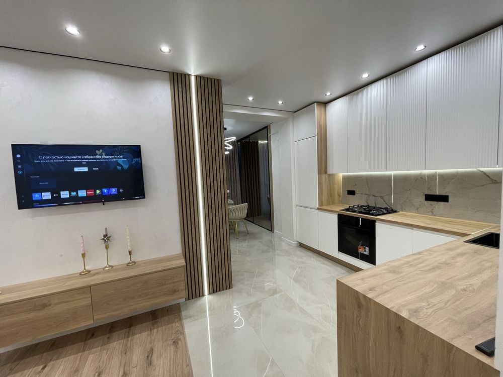 Пропонується стильна квартира з сучасним дизайнерським ремонтом у престижному житловому комплексі.