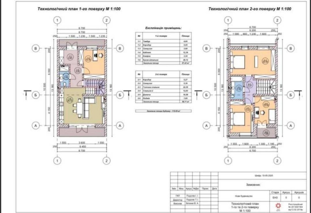 Котедж= 2 поверхи, загальна площа 115,55кв.м., 1,5с. землі. Гарне планування.