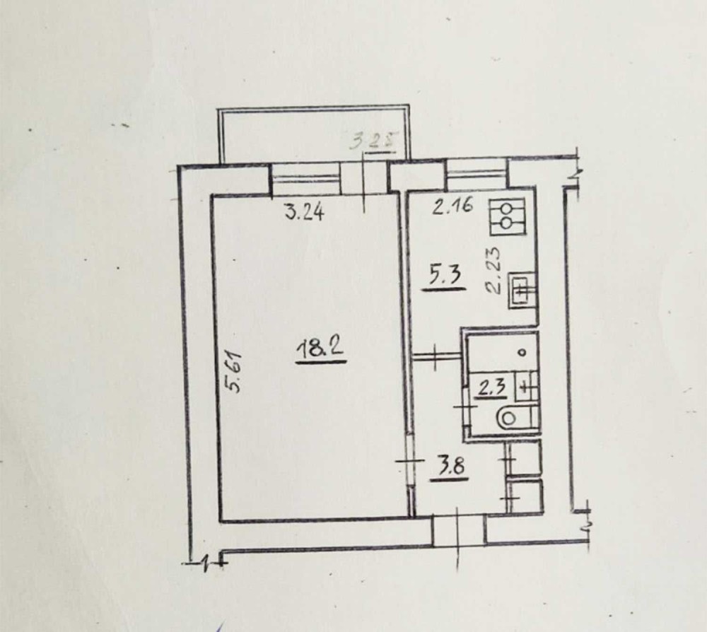 Квартира розташована на 6 поверсі 9-поверхового цегляного будинку. Загальна площа — 30,5 кв.м, простора кімната — 18,2 кв.м, кухня — 5,3 кв.м. Зручне та функціональне планування.