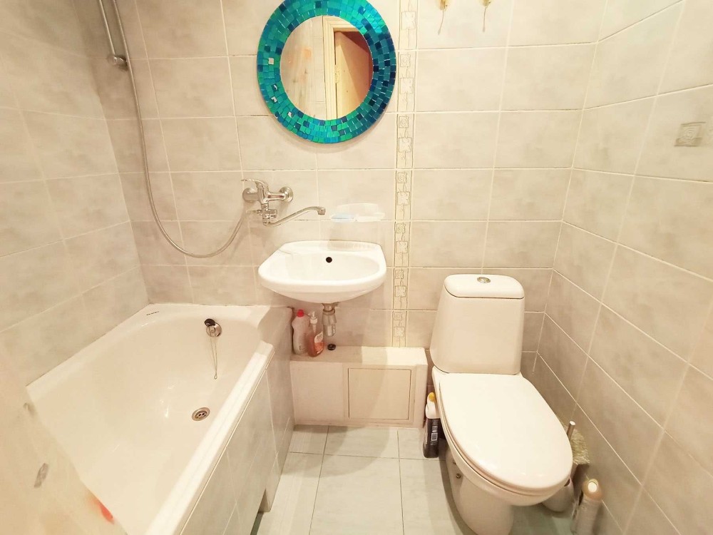 Санвузол сумісний, встановлена ванна. Є засклений балкон. Вікна виходять у двір, що забезпечує тишу, затишок і комфорт. Квартира суха та тепла.