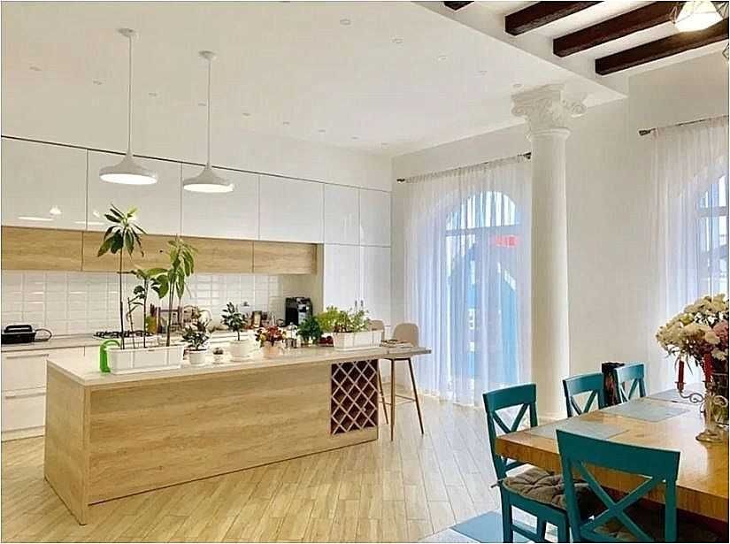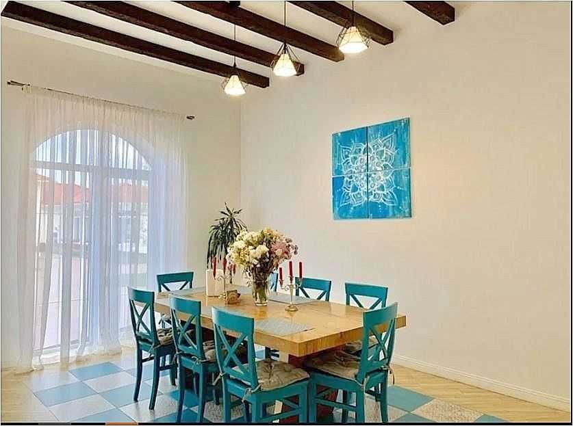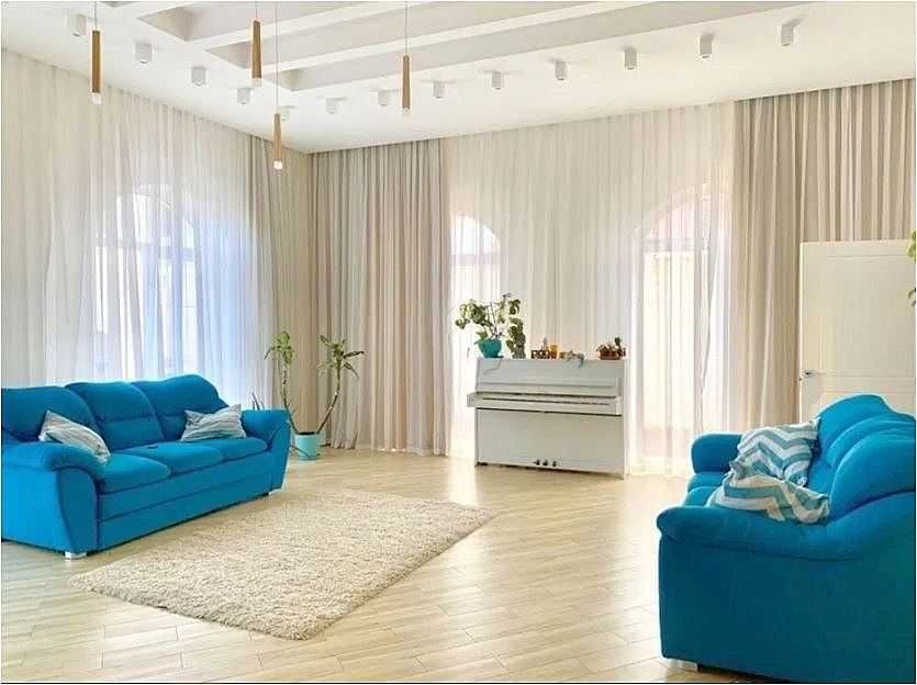 600 метров, 9 комнат (6 спален, гостиная, два кабинета, кухня-столовая), 4 санузла, комплектация мебелью и техникой, две гардеробные комнаты.