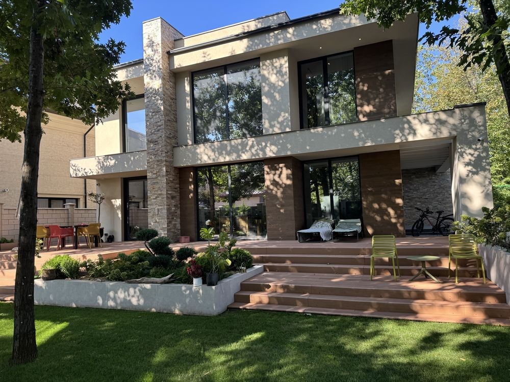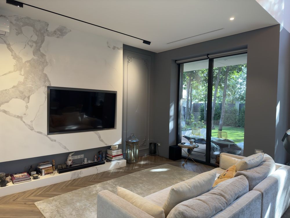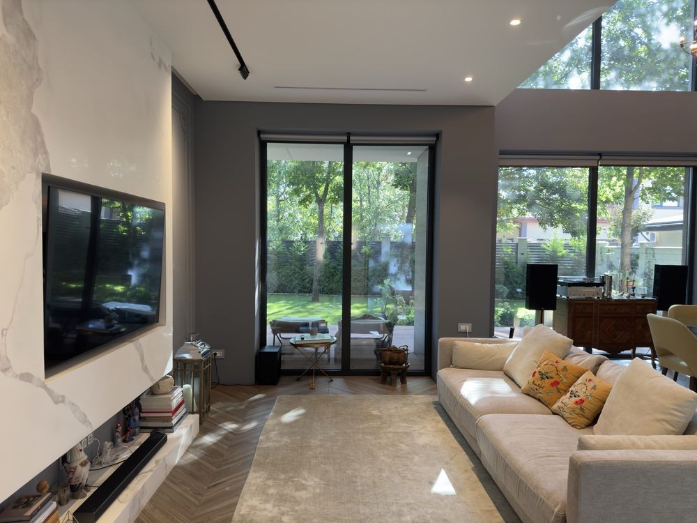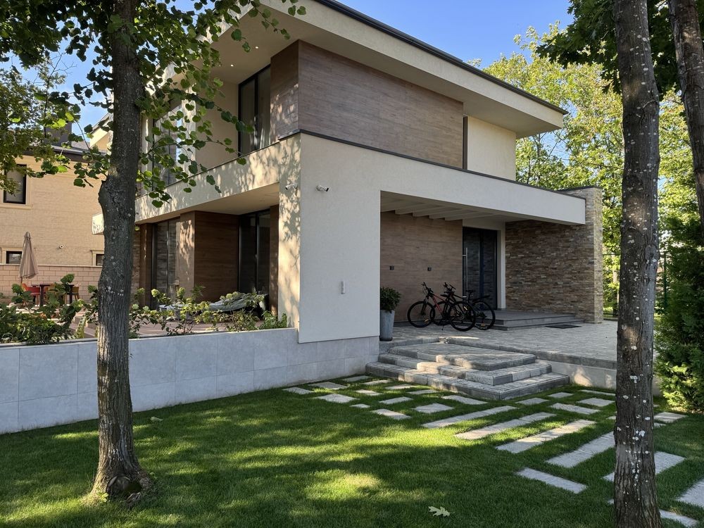 При строительстве дома использовались только лучшие материалы - окна панорамные алюминиевые компании “City Glass”. Освещение по дому 3000к что является самым приятным для глаз человека. Электро фурнитура - дизайнерская линейка фирмы vimar.
