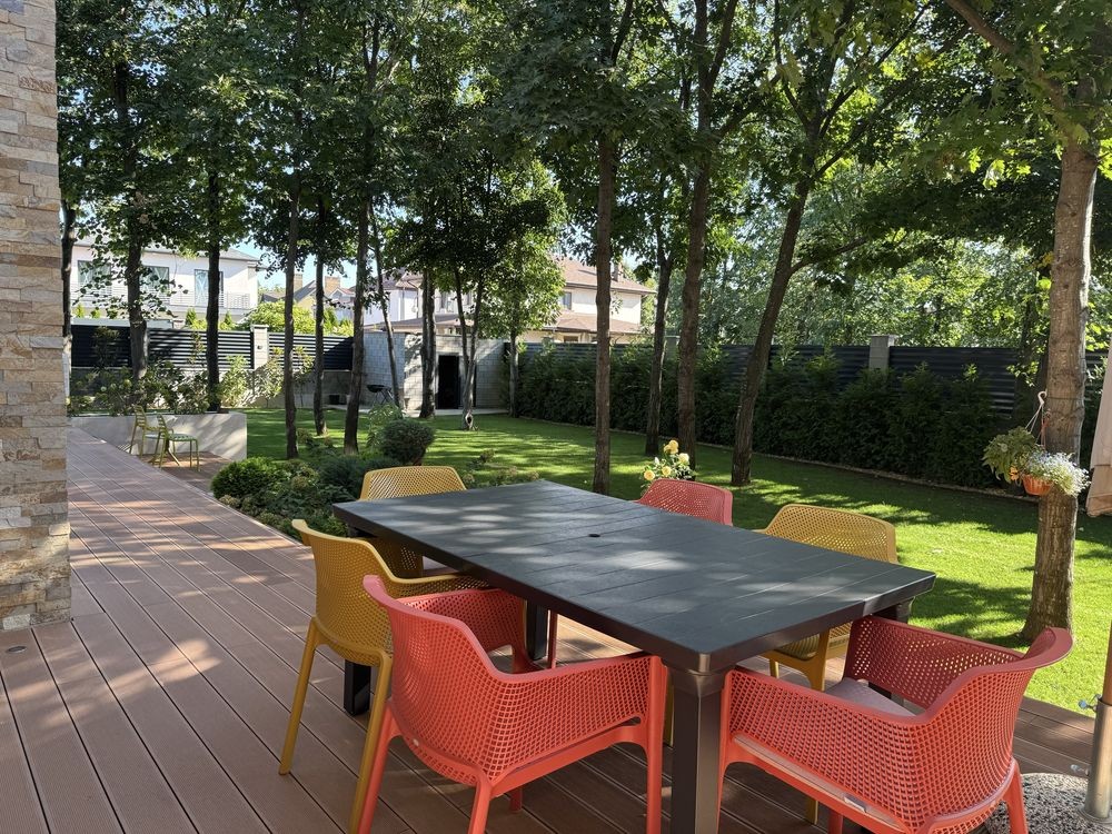 Уютная терраса с зоной отдыха и обеденной зоной.