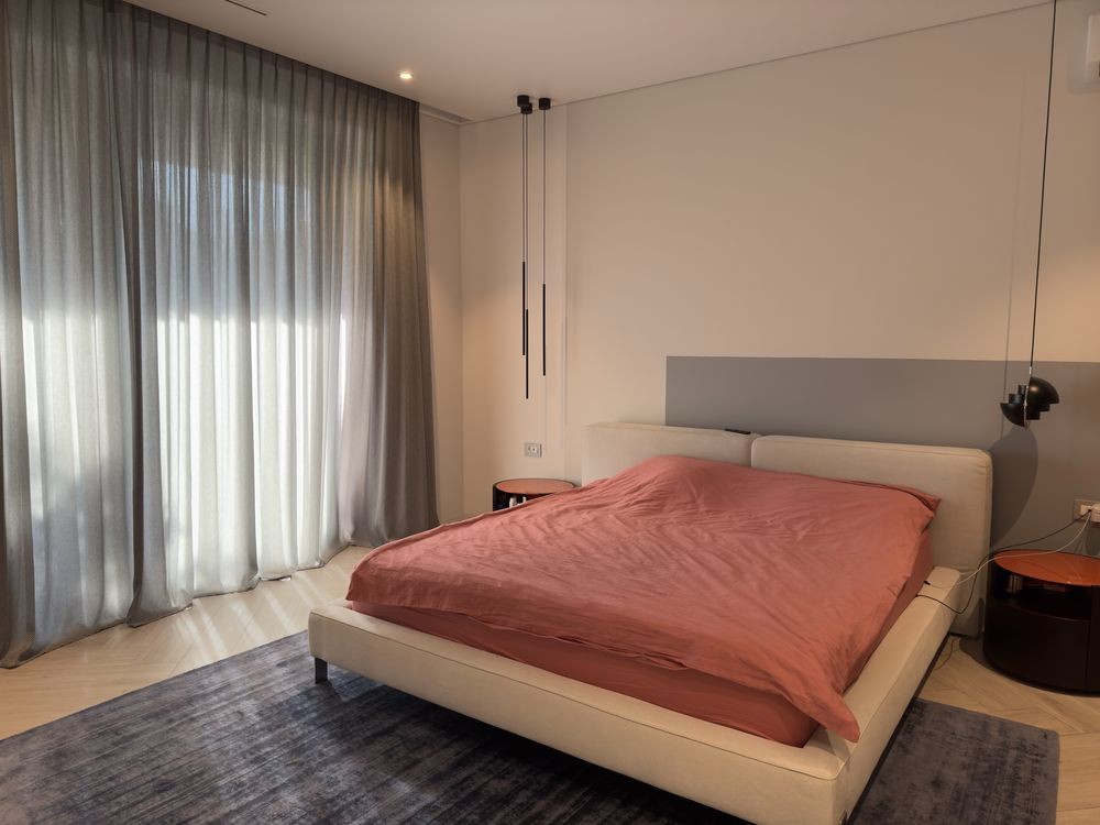 Второй этаж: просторная мастер спальня с большим санузлом, гардеробной и выходом на балкон.