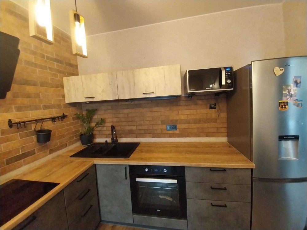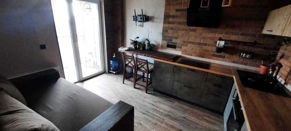 Затишна, сонячна квартира : кухня – вітальня, кімната, гардеробна і просторий сан вузол. Чудовий ремонт якому 3 роки. Також укомплектована усіма необхідними меблями та технікою.