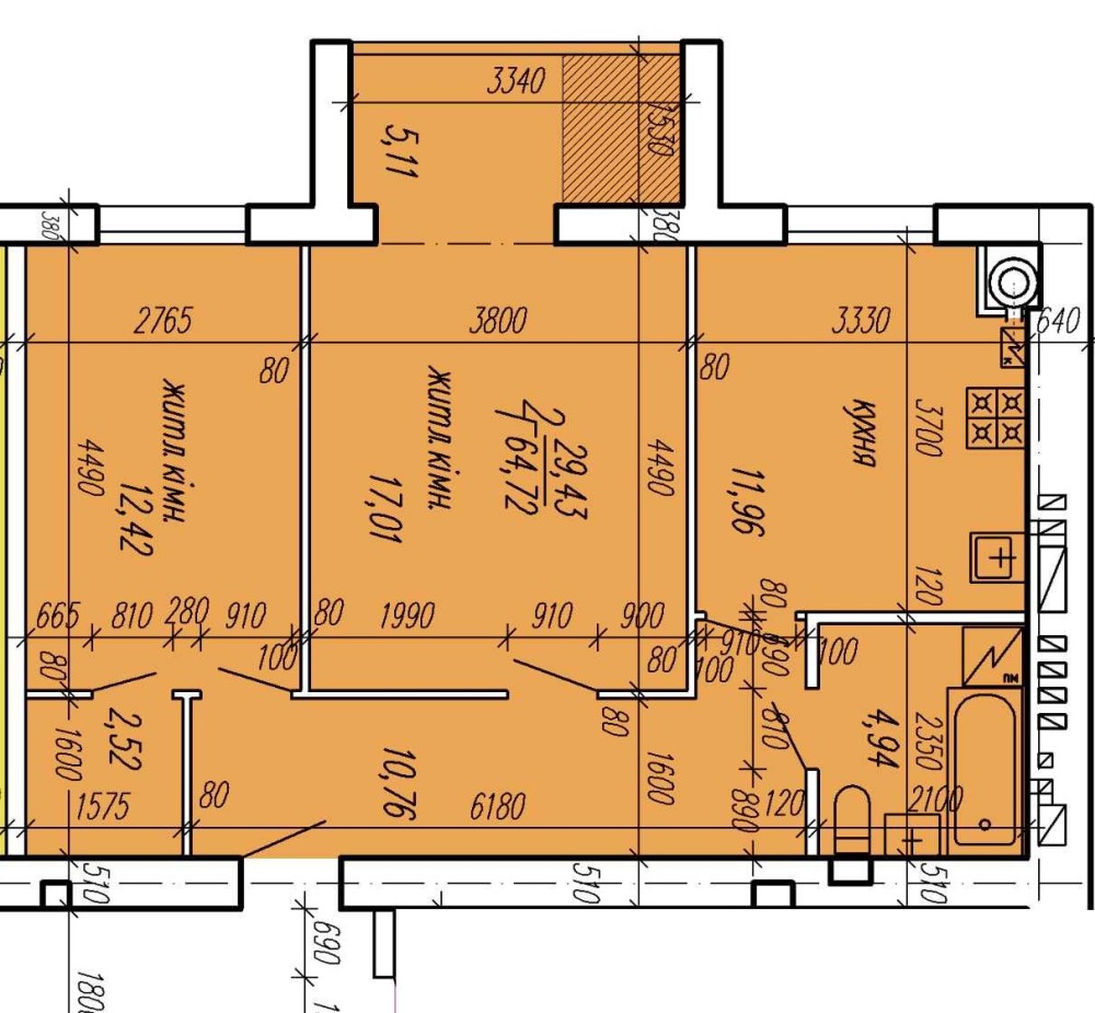 • Общая площадь 64.72 м2