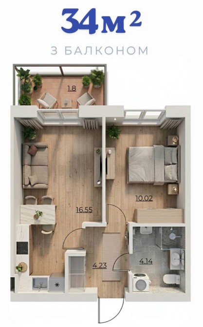 1к квартира 33м2 на першому поверсі (є вибір по поверхах)