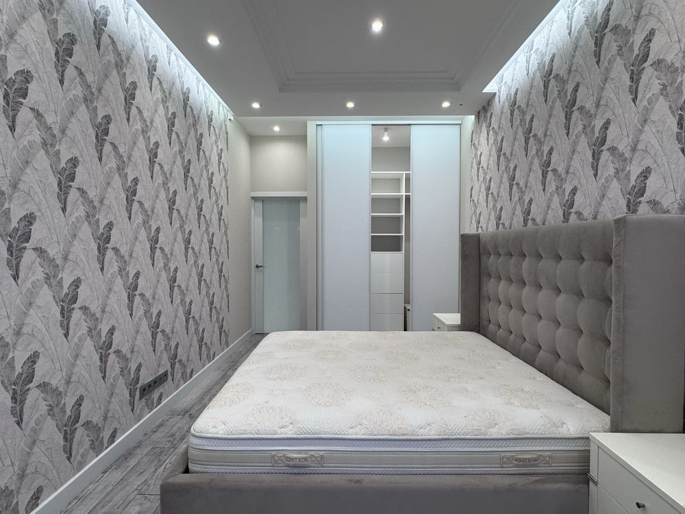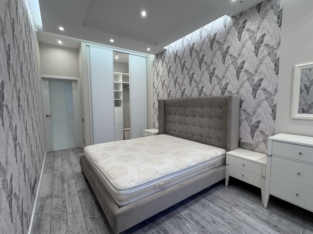 • спальня з комфортним ліжком та преміальним матрацом King Koil, гардеробна.