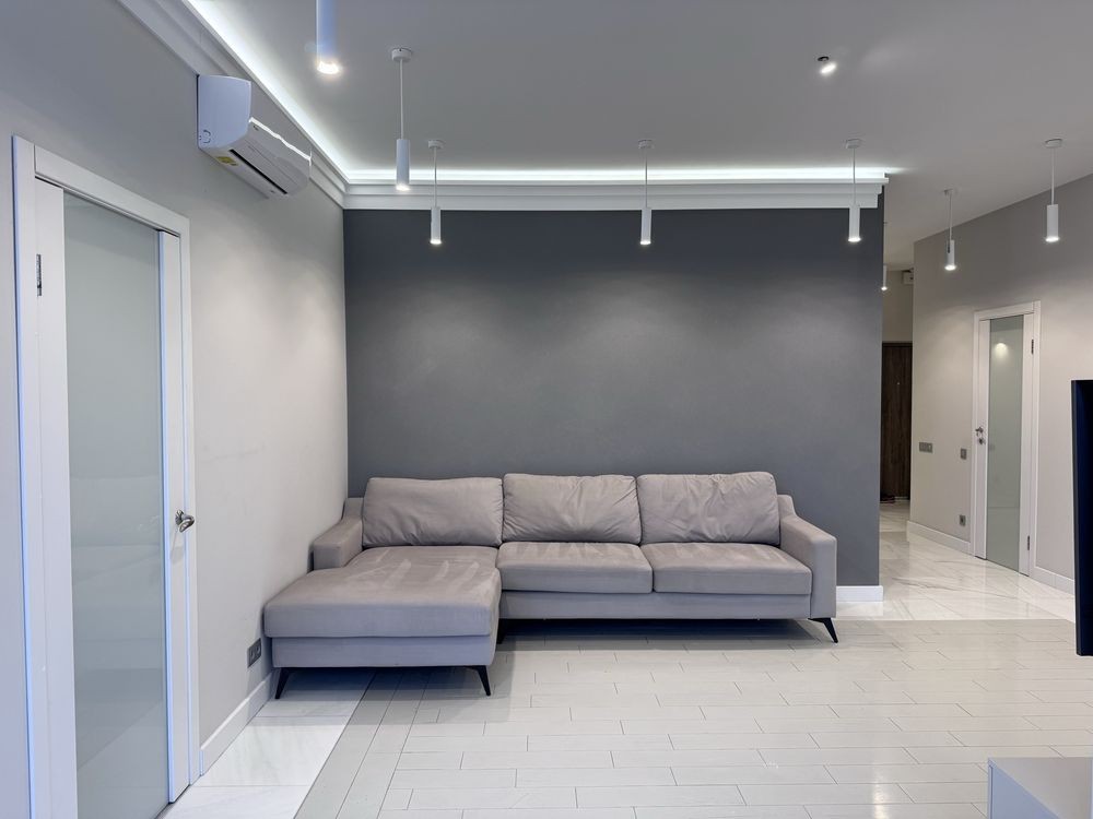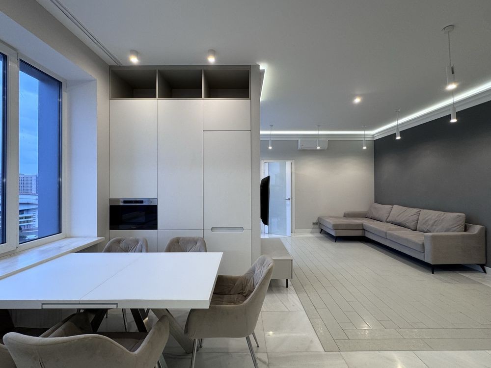 Пропонується стильна простора квартира в будинку бізнес-класу з прямим виходом до мальовничої набережної Дніпра.