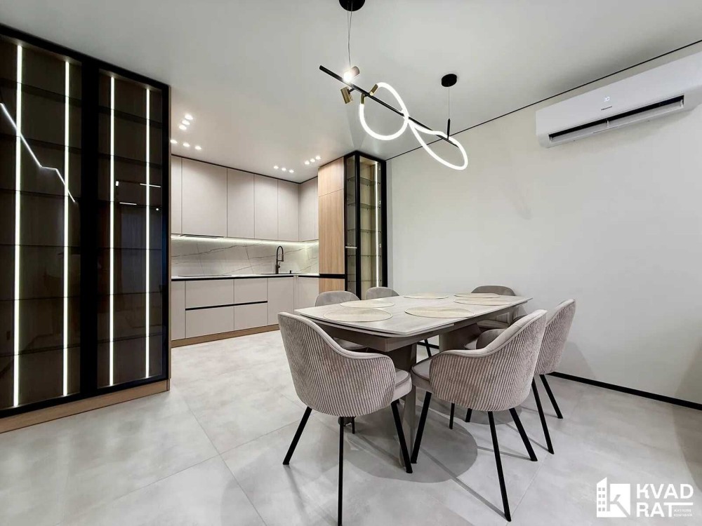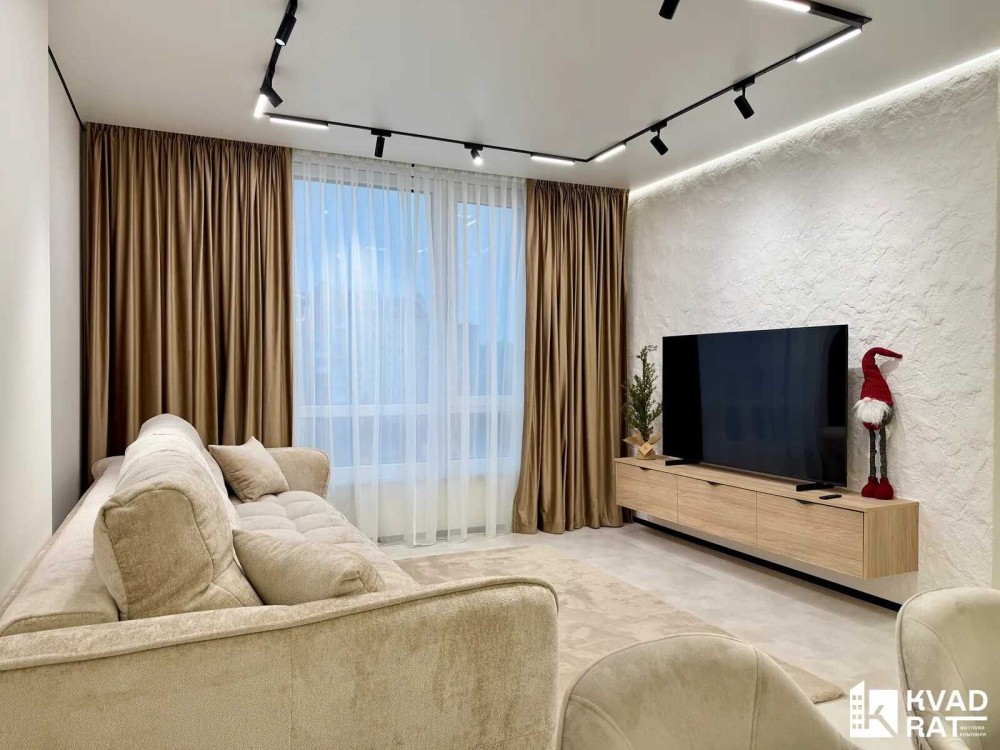 Планування продумане та функціональне кухня-студія для комфортного сімейного простору дві окремі спальні кімнати просторий санвузол та велика зона прихожої. У квартирі виконано якісний та стильний ремонт із використанням декоративної штукатурки на стінах. Усі меблі виготовлені під індивідуальне замовлення