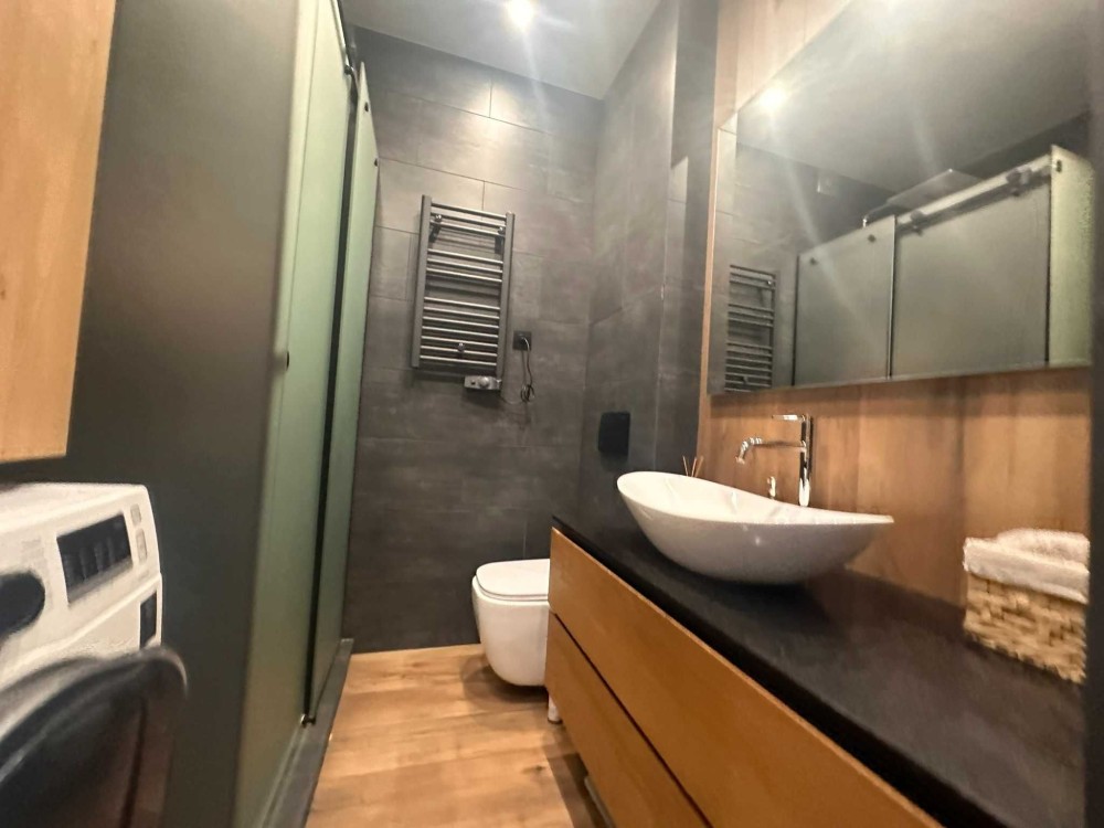 Всі меблі під замовлення, якісна техніка та сантехніка. Тепла підлога по всій квартирі, крім зони спальні.