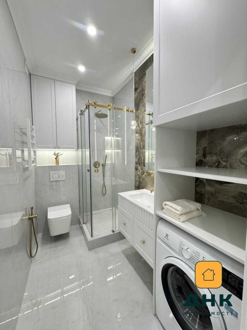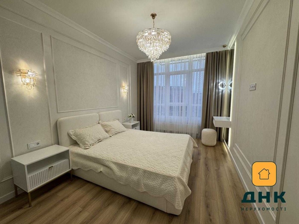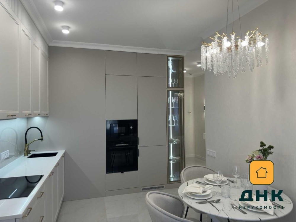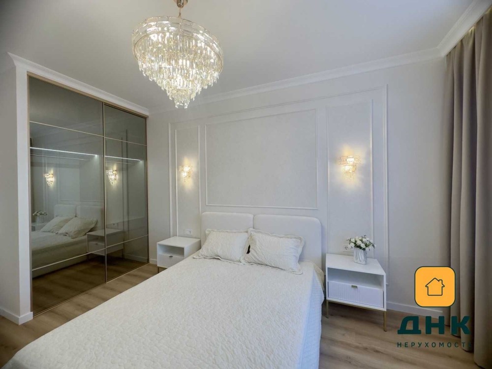 Квартира расположена в новом доме бизнес-класса и полностью готова к проживанию. Выполнен качественный дизайнерский ремонт в светлых оттенках с использованием современных материалов: декоративная шпатлевка на стенах, гипсокартонные потолки, продуманное освещение. Установлена мебель и техника известных брендов, два кондиционера, стиральная машина, полный комплект кухонной техники, домофон. Кухня выполнена из крашеного МДФ с каменной столешницей.