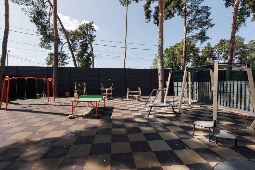 Закрита зелена територія з широкими вулицями та дитячим майданчиком, продумана організація безпеки, а саме: цілодобовий контроль доступу, відеонагляд та система індивідуальних електронних перепусток.