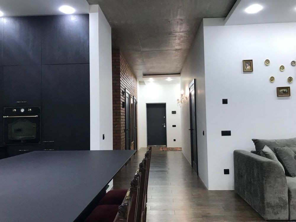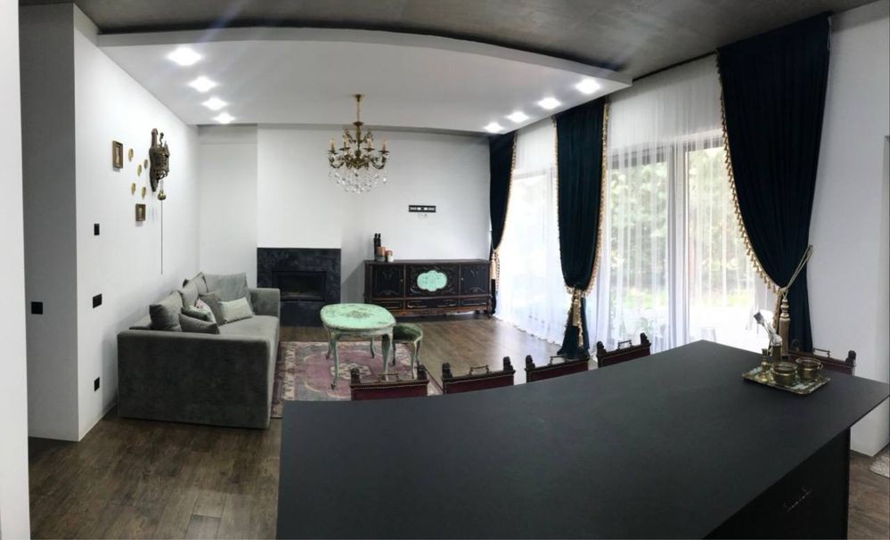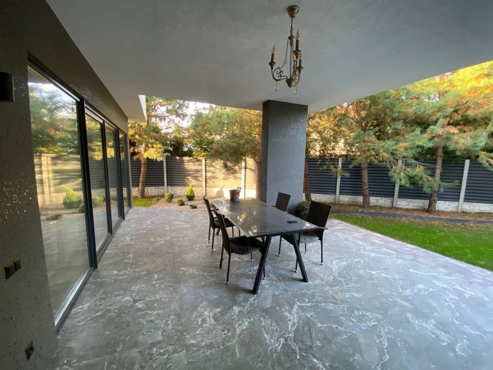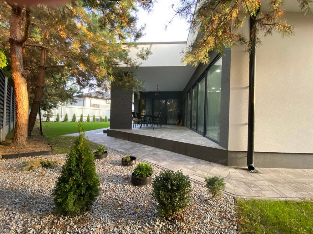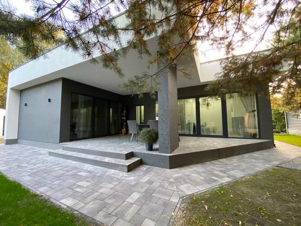 Продається будинок в стилі Хай-Тек, власники будували для себе з найкращих матеріалів та приділенням уваги всім деталям, для зручного проживання. Дім знаходиться у живописному селі Гнідин, яке оточене лісами та водоймами, ви знайдете все для більш чим комфортного проживання. В селі в пішій доступності є школа, державний і приватний дитячий садочок, розвиваючі гуртки, тенісні корти, стадіони, басейн і СПА. Напрямок не завантажений, 15 хв. і ви в Києві. Будинок розташований в тупіковій , тихій вуличці, повністю засадженій соснами. Площа ділянки 8 соток. Ви зможете в повній мірі насолоджуватись співом пташок і запахом хвої, а не шумом проїжджаючих машин. Площа будинку 156 метрів + 50 метрів тераси. Будинок введений в експлуатацію і можна купити під різні державні програми. Виконаний дизайнерський ремонт в стилі лофт, з елементами класики. В будинку 3 окремі спальні кімнати, 3 гардеробні кімнати, 2 санвузли, велика кухня-вітальня, технічна кімната. Фундамент - посилена плита, стіни Аерок 375, утеплений перлітом , дах - монолітна плита утеплена стерадуром 10 см. Вікна Rehau з розсувними системами. Септик з дренажним полем. Свердловина 68 метрів, з водоочісною системою. Опалення електричне, заведено 17 квт.