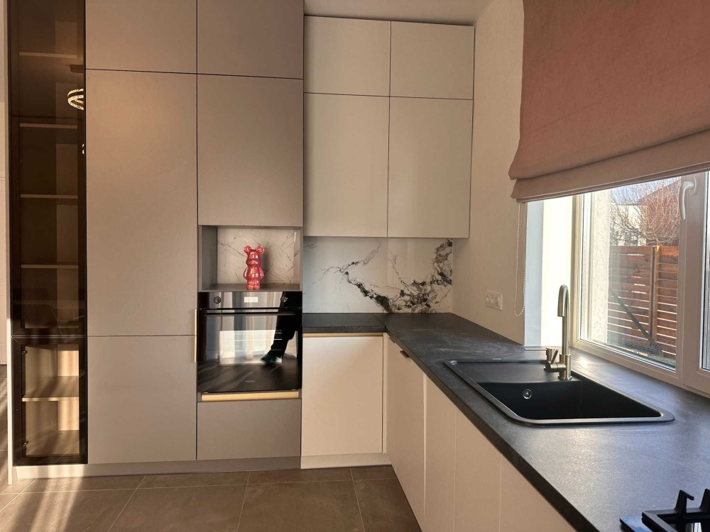 Таунхаус розташовано в новому котеджному містечку, поряд лише низька забудова, вигідне місце розташування. На обєкті зроблено якісний ремонт та встановлено вбудовану кухню з технікою.